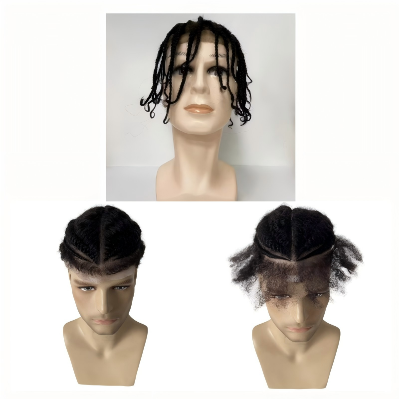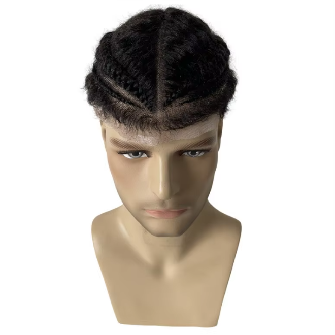 and 2 Pcs Short Black Afro Cornrow Braids Full Lace Wig for Black Men.
