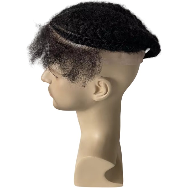 Detail for Remy Human Hair Systems Afro Curl Black Box Braids Lace Base Wig: