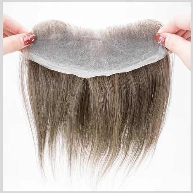 Wholesale of 2 Pcs PU Front Line Hair Patch All V Loop Invisible Bangs and 2 Pcs Forehead Hairline Human Hair Fringes For men.