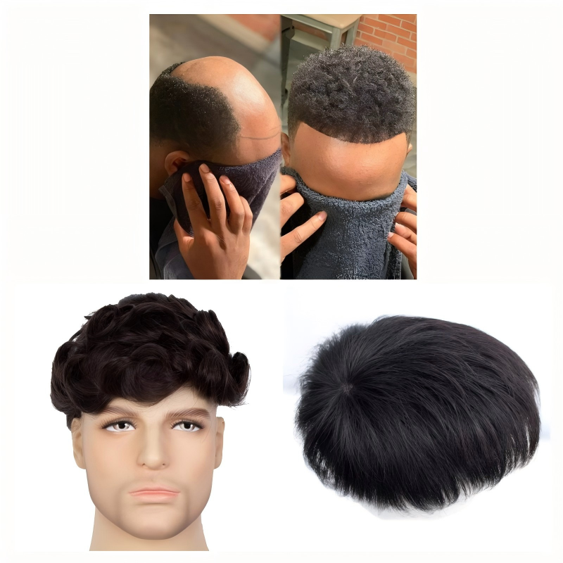Wholesale of Lace Base Afro Toupee for Men, Human Hair Toupee Prosthesis Patch Units Implant for Men and Mens Human Hair Clip in Silk Straight Mono Base Toupee.