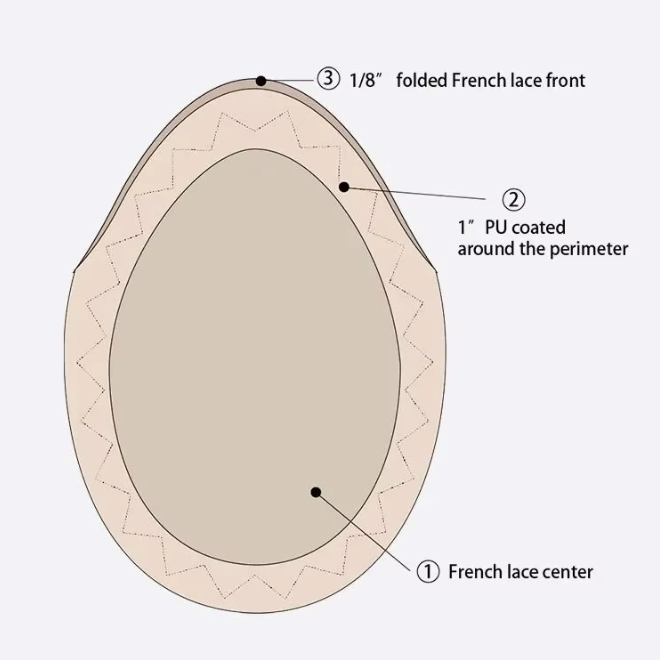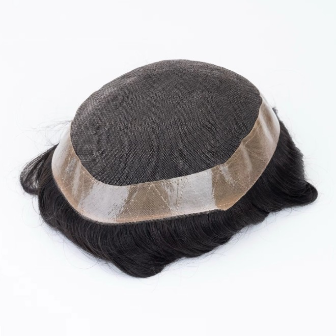 Detail for French Lace With Poly Perimeter Mens Human Hair Synthetic Blend Toupee