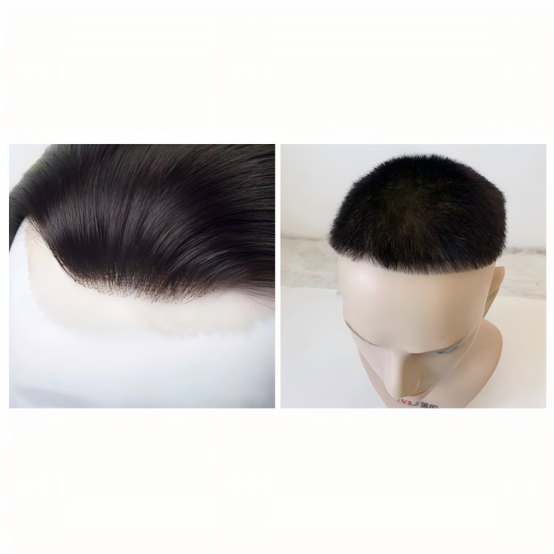 Detail for Men Handmade Straight Natural Remy Indian Human Toupee: